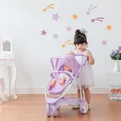 Cette poussette est ajustable pour que votre poupon puisse dormir ou s’asseoir, offrant Ă vos petits poupons deux plaisirs ! Sous le châssis, il y a un espace de rangement pour les couches et autres accessoires indispensable de poupons. Transportez votre poupĂ©e ou poupon dans le quartier avec style dès aujourd’hui !
