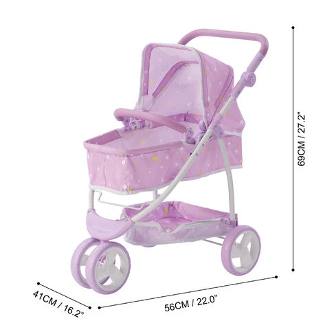 DIMENSIONS (L) 47 cm X (l) 41.5 cm X (H) 69 cm. Emmenez votre poupée ou poupon préféré un peu partout en ville et offrez-lui une promenade sûre et luxueuse avec la poussette 2 en 1 d’Olivia’s Little World.