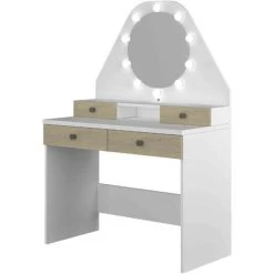 Cette coiffeuse enfant 4 tiroirs avec miroir orné de 10 ampoules permettra à votre enfant de se préparer en tout tranquillité comme une vraie petite star !