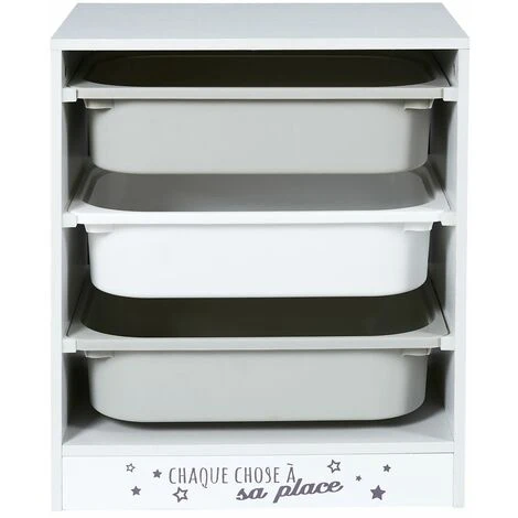 Chaque chose à sa place. Notre meuble de changement trouvera facilement sa place dans la chambre de votre enfant. Pratique avec ses 3 bacs de rangement démontables, on aime son design simple et épuré.