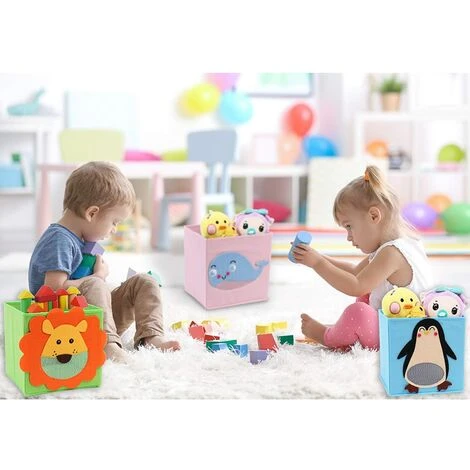 Voici le petit royaume animal ! Ces boîtes de rangement aux motifs lion, baleine et pingouin sont conçues spécialement pour les enfants. Donnez à votre enfant la chance de construire un zoo dans sa chambre !