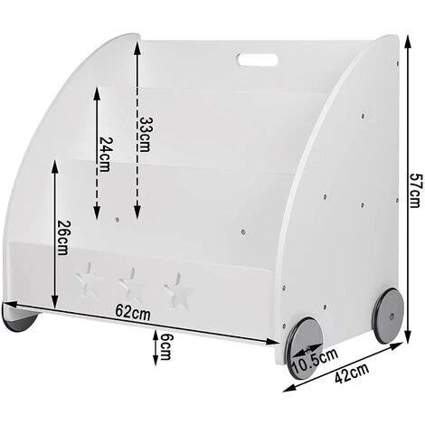 Compartiments pour des livres: ❤ Cette Ă©tagère Ă jouets mesure 62 x 57 x 42 cm (L x H x l). Trois compartiments de rangement Ă diffĂ©rentes hauteurs sont parfaits pour les livres d’images de diffĂ©rentes tailles. Ces compartiments en gradins permettent aux enfants de trouver leurs adorables livres en un coup d’Ĺ“il et de les remettre dans leur propre place après la lecture.