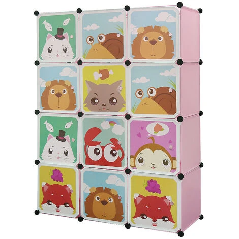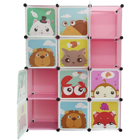 Armoires Etagères Plastiques Enfants, 12 Cubes Armoires Meubles de Rangement Pour Vêtements Chaussures Jouets Cartoon
